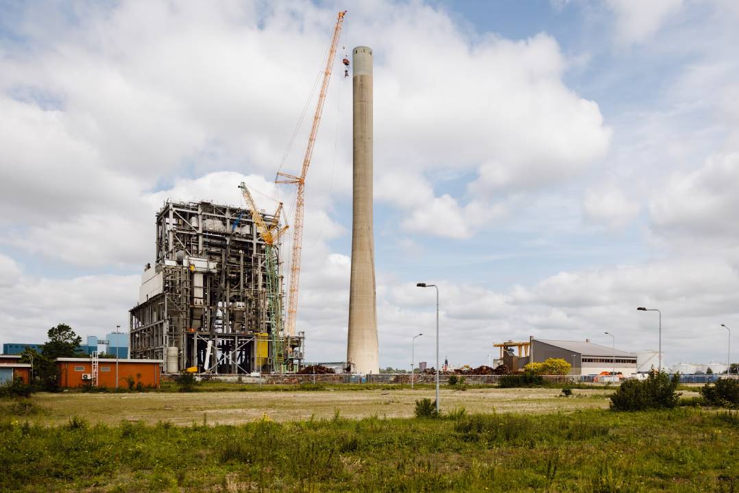 L'era dell'energia derivata dai combustibili fossili sta per volgere al termine. Per questo motivo, una centrale a carbone ad Amsterdam è stata chiusa nel 2020 e subito dopo è iniziata la sua demolizione. Uno degli ultimi interventi del processo riguardava il camino alto 175 metri dell'impianto, che un Tadano CC 38.650-1 ha recentemente abbattuto utilizzando un robot di demolizione agganciato al braccio della gru. Il servizio di gru è stato affidato a Sarens dalle imprese di costruzione del consorzio Combinatie ACGH, composto da LEK Sloopwerken, Vermeulen Sloop en Milieutechniek e MNE Sloop & Demontage.