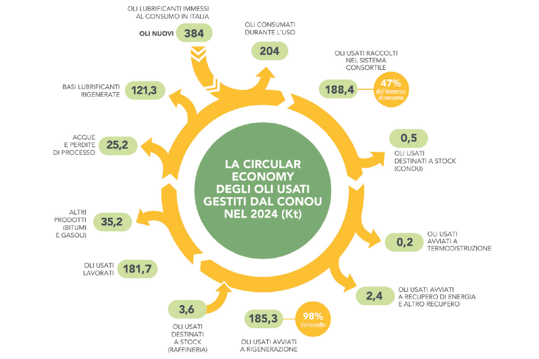 Una differenza che rende il sistema italiano un vero e proprio modello di riferimento internazionale, capace di coniugare tutela ambientale e benefici economici. Ogni anno, infatti, la filiera nazionale recupera lubrificanti e altri prodotti per un valore stimato di circa 120 milioni di euro.