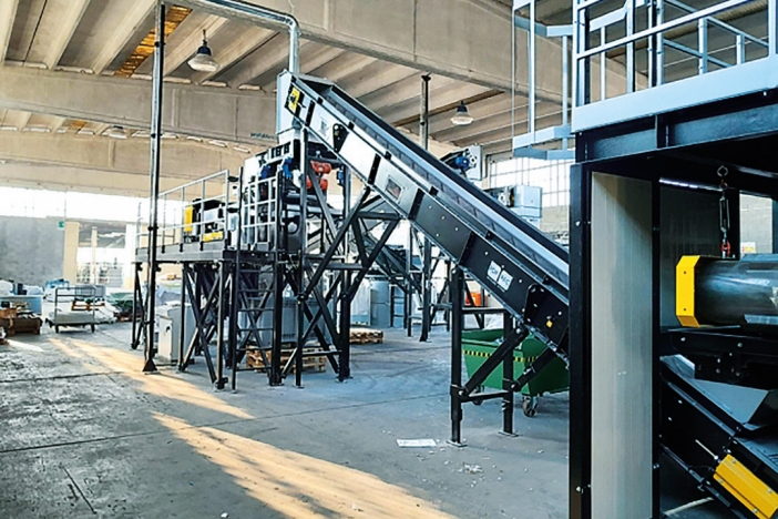 • 1. Laceratore: il primo passo del trattamento prevede l'uso del Laceratore LC 1500, una macchina bialbero progettata per il trattamento dei RAEE e dei rifiuti imballati. Questo macchinario è in grado di gestire elevati flussi di materiale e ridurre drasticamente il loro volume.