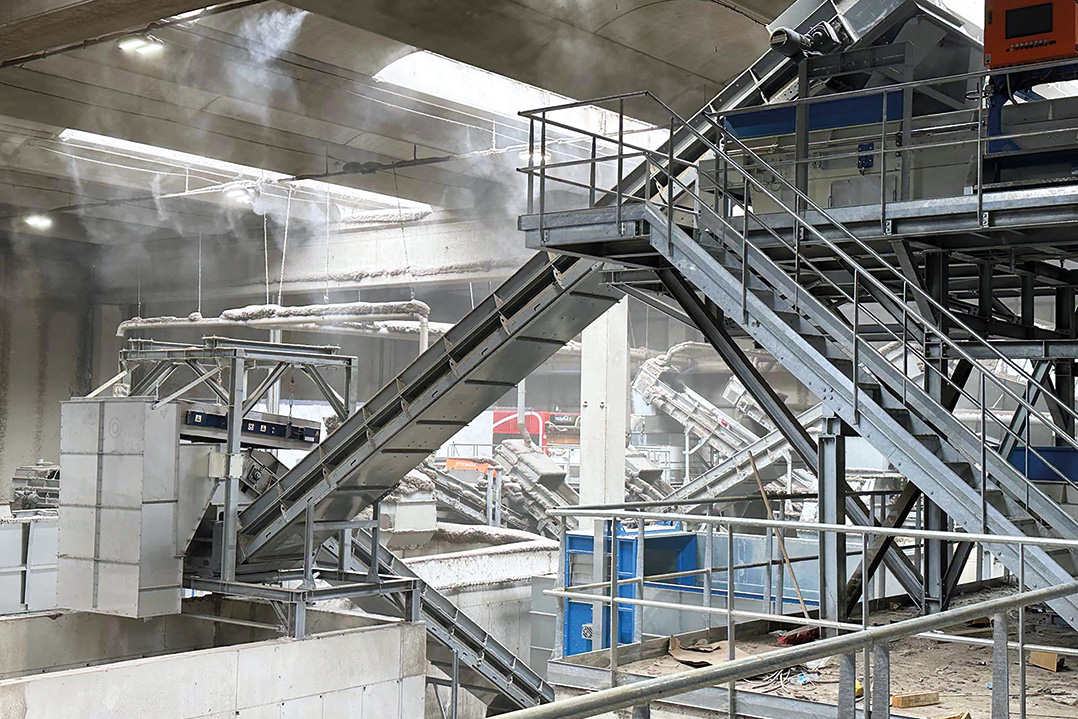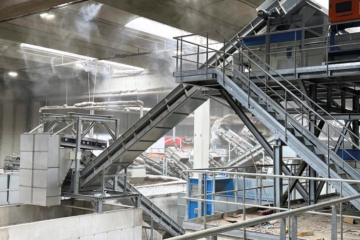 Completano la linea diversi Buffer Box dosatori, che assicurano stoccaggio temporaneo e dosaggio uniforme dei materiali, e una serie di nastri trasportatori autopulenti particolarmente studiati e prodotti da IFS per gestire carichi gravosi e garantire continuità operativa.