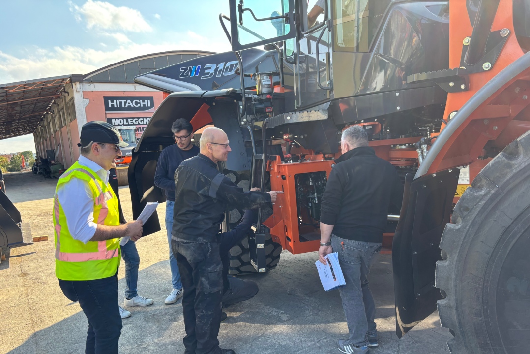 Durante le giornate di formazione, i tecnici hanno lavorato sulle pale ZW220-7 e ZW310-7, macchine tra le più avanzate della loro categoria in termini di sicurezza, comfort e produttività. È stato approfondito soprattutto il lavoro sulla calibrazione della trasmissione e dello zero della pesa, due aspetti tecnici particolarmente complessi e cruciali per l'efficienza delle macchine in cantiere.